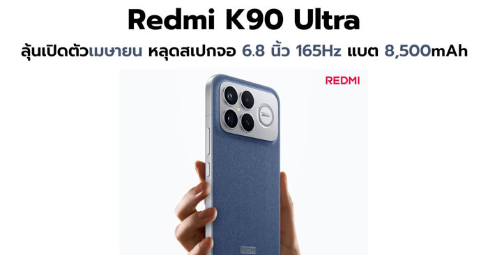 Redmi K90 Ultra ลุ้นเปิดตัวเมษายน 2026 หลังหลุดสเปกจอ 6.8 นิ้ว 165Hz และแบต 8,500mAh