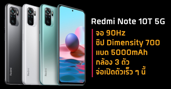 Redmi Note 10T 5G เตรียมเปิดตัวเร็ว ๆ นี้ คาดมาพร้อมจอ 90Hz, ชิป Dimensity 700, และแบตอึด 5000mAh