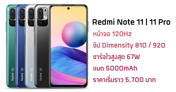Redmi Note 11 | Note 11 Pro เผยสเปก มาพร้อมจอ 120Hz, ชิป Dimensity 810 / 920 และชาร์จไวสูงสุด 67W ในราคาเริ่มราว 5,800 บาท