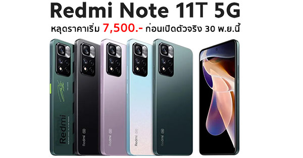 Redmi Note 11T 5G หลุดราคาเริ่ม 7,500 บาท ก่อนเปิดตัวสิ้นเดือนนี้ พร้อมชิป Dimensity 810 รุ่นใหม่ จอลื่น 90Hz 6.6 นิ้ว และกล้อง 50MP