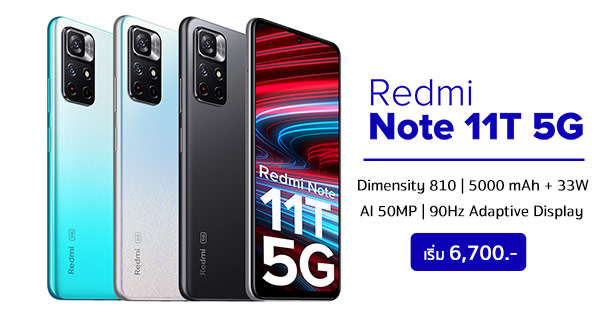เปิดตัว Redmi Note 11T 5G เริ่ม 6,700 บาท ครบด้วยชิป Dimensity 810 มีชาร์จไว 33W พร้อมจอลื่น 90Hz Adaptive และกล้อง AI 50MP
