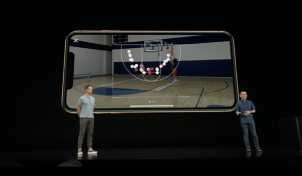 Apple ปูทางระบบ AR มาตั้งแต่ iOS 11 และในงานเปิดตัว iPhone XS เมื่อปีที่ผ่านมา ก็มีการโชว์ประสิทธิภาพของ AR ในวงการกีฬา อย่างเช่น นับสถติการชู๊ตบาสเก็ตบอลว่าชู๊ตเข้า หรือพลาดจุดใดบ้าง