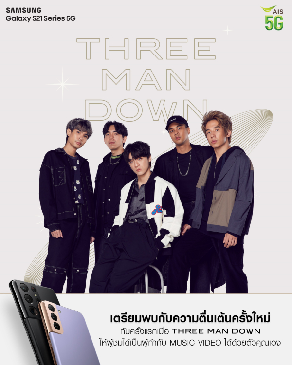 กรุงเทพฯ (19 เมษายน 2564) – สามยักษ์ใหญ่เมืองไทย ซัมซุง-เอไอเอส-จีเอ็มเอ็ม แกรมมี่ เตรียมสร้างปรากฏการณ์ครั้งใหม่ หวังพิชิตใจคน Gen Z ส่งมิวสิคมาร์เก็ตติ้งแคมเปญ นำทีมโดยศิลปินดังแห่งยุค THREE MAN DOWN กับครั้งแรกของการชวนเหล่าคนรุ่นใหม่มาร่วมบอกเล่าเรื่องราว แสดงความคิดเห็น และเลือกตอนจบของมิวสิควิดีโอตัวล่าสุดของวงไปด้วยกัน