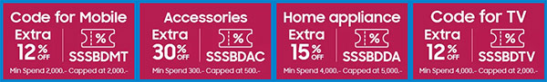 - คูปองส่วนลดสูงสุด 15% สำหรับโทรทัศน์ และเครื่องใช้ไฟฟ้าในบ้าน