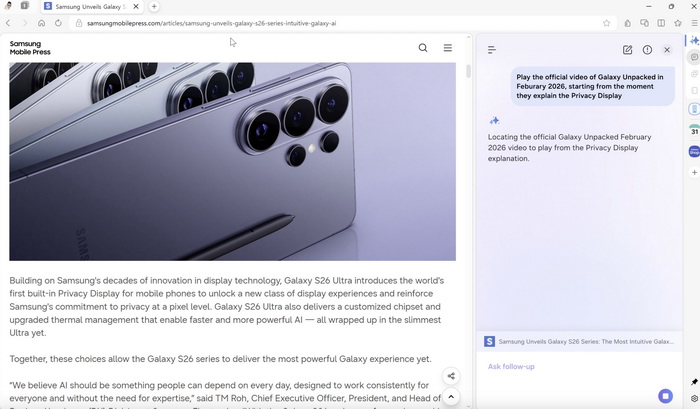 ซัมซุงเปิดตัว Samsung Browser สำหรับ Windows ต่อยอดประสบการณ์การใช้งานเว็บไซต์ด้วย Agentic AI จากมือถือ สู่ PC