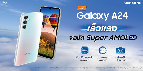 ซัมซุงเปิดตัว Samsung Galaxy A24 เร็วแรง จอสวยคมชัด Super AMOLED สเปคแรง สุด AWESOME มาพร้อมกับชิปเซ็ต MediaTek Helio G99 ที่เร็วแรงทันใจ! ในราคาเพียง 7,999