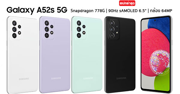 Samsung Galaxy A52s 5G เผยสเปกครบ กับชิป Snapdragon 778G จอลื่น 90Hz 6.5 แบตชาร์จไว 4500 mAh และกล้อง 64MP ลุ้นเปิดตัว 11 ส.ค.นี้