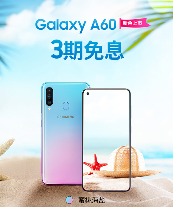 ล่าสุดทาง Samsung ประเทศจีน ได้เปิดตัว Samsung Galaxy A60 สีใหม่อย่าง Peach Sea Salt การตัดกันระหว่างสีชมพู และสีฟ้า เรียกได้ว่าสายพาสเทลไม่ควรพลาด โดยมีเฉพาะรุ่น 6GB+64GB เท่านั้น ในราคา 1,499 หยวน หรือประมาณ 6,700 บาท