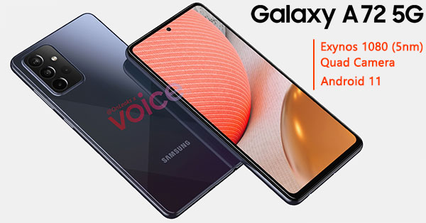 สำหรับ Samsung Galaxy A72 5G คาดว่าจะมากับชิปเซ็ต Exynos 1080 ที่ผลิตบนเทคโนโลยีระดับ 5nm รุ่นแรกของทาง Samsung พร้อมรองรับเครือข่าย 5G โดยมีหน้าจอ Super AMOLED ขนาดใหญ่ 6.7 นิ้ว เทียบเท่ารุ่นพี่ตระกูล Note Series และมาพร้อมระบบปฏิบัติการ Android 11 ครอบทับด้วย One UI 3.0 ตั้งแต่แกะกล่อง
