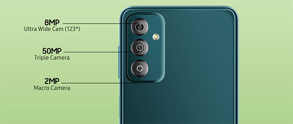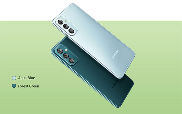 Samsung Galaxy F23 5G มีตัวเลือกทั้งหมด 2 สี ได้แก่ Aqua Blue และ Forest Green โดยจะเริ่มวางจำหน่ายในวันที่ 16 มีนาคมนี้