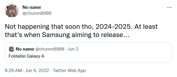 ข้อมูลล่าสุดของ Galaxy Fold Lite ถูกเปิดเผยโดย @chunvn8888 ซึ่งเป็นบัญชีข่าวหลุดบน Twitter โดยเปิดเผยว่า Samsung กำลังซุ่มทำมือถือจอพับได้ราคาประหยัด ซึ่งอาจเป็นหนึ่งในมือถือระดับกลางตระกูล Galaxy A และจำเริ่มทำตลาดในปี 2024 - 2025
