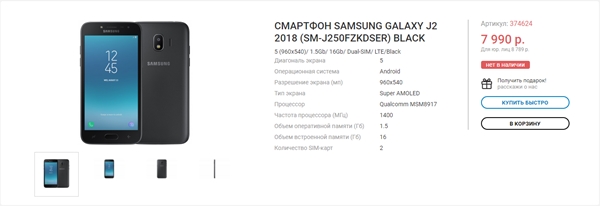 โดยเมื่อไม่นานมานี้ รายชื่อของ Samsung Galaxy J2 (2018) ได้ไปปรากฏอยู่บนร้านค้าตัวแทนจำหน่ายแห่งหนึ่งในประเทศรัสเซีย ซึ่งได้เปิดเผยราคาวางจำหน่ายของสมาร์ทโฟนรุ่นดังกล่าวเอาไว้ที่ 7,990 รูเบิล หรือทประมาณ 4,500 บาท พร้อมกับได้เปิดเผยคุณสมบัติบางส่วนให้ได้ทราบกันด้วย โดย Samsung Galaxy J2 (2018) มาพร้อมกับคุณสมบัติเด่นดังต่อไปนี้