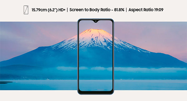 - หน้าจอแสดงผล PLS TFT LCD Infinity-V Display ขนาด 6.2 นิ้ว ความละเอียดระดับ HD+ (720x1520 พิกเซล)