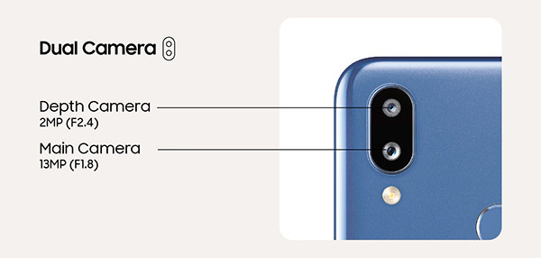 - กล้องดิจิทัลด้านหลังแบบคู่ (Daul Camera) ความละเอียด 13 + 2 ล้านพิกเซล มีขนาดรูรับแสงที่ F/1.8 + F/2.4