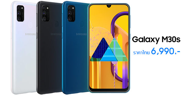 Samsung Galaxy M30s มีตัวเลือกทั้งหมด 3 สี ได้แก่ Opal Black, Sapphire Blue และ Pearl White กับราคา 6,990 บาท สำหรับท่านที่สนใจสามารถติดตามการสั่งซื้อได้ที่ Lazada