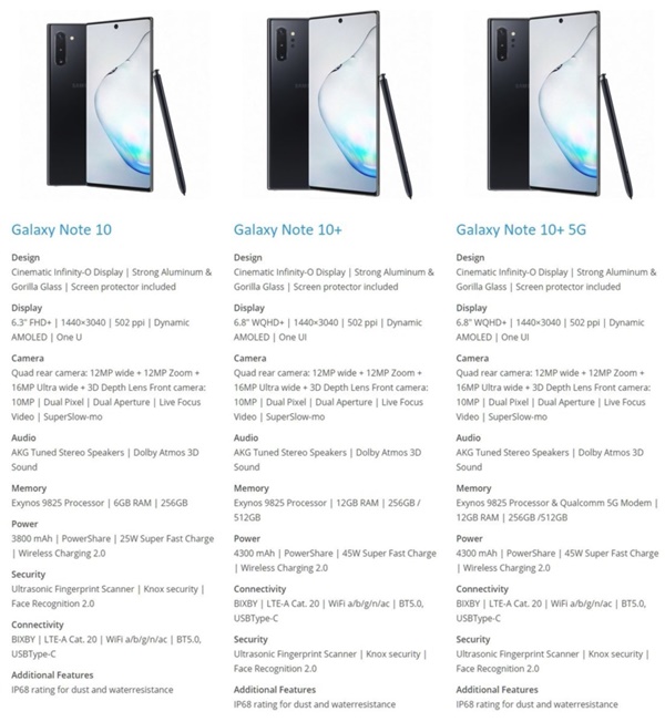 เผยสเปกยกชุด Samsung Galaxy Note 10 Series ครบทั้งสามรุ่น ใช้จอ Cinematic Infinity-O, จอใหญ่สุด 6.8 นิ้ว, กล้องสูงสุด 4 ตัว, RAM จัดเต็ม 12GB และชาร์จเร็ว 45W