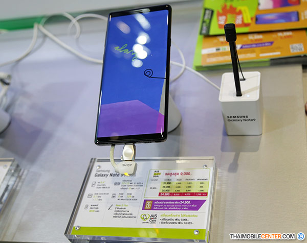 เริ่มกันที่ค่าย AIS ที่มาพร้อมกับข้อเสนอสุดพิเศษสำหรับลูกค้าที่สนใจสั่งซื้อ Samsung Galaxy Note 9 รุ่นความจุ 512GB ภายในงาน TME 2018 ราคาเพียง 32,900 บาท (จากราคาปกติ 41,900 บาท) เพียงสมัครใช้งานแพ็กเกจรายเดือน 4G Hot Deal 1,299 บาท พร้อมชำระค่าบริการล่วงหน้า 4,000 บาท (ระยะสัญญา 12 เดือน)