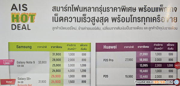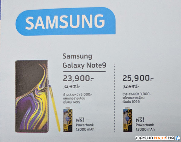 สำหรับ Galaxy Note 9 ในรุ่นความจุ 128GB กับส่วนลด 9,000 บาท เหลือ 24,900 บาท (จากราคาปกติ 33,900 บาท) เพียงสมัครใช้งานแพ็กเกจรายเดือน 4G Hot Deal 1,299 บาท พร้อมชำระค่าบริการล่วงหน้า 4,000 บาท (ระยะสัญญา 12 เดือน)