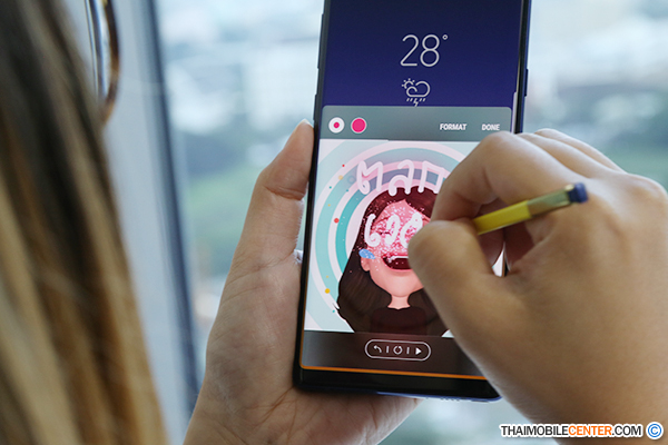 น่าจะเป็นฟังก์ชันที่ผู้ใช้ Galaxy Note คุ้นเคยฟังก์ชันหนึ่งเลยก็ว่าได้ โดยผู้ใช้สามารถจด และบันทึกสิ่งต่างๆ ได้อย่างรวดเร็วในขณะที่หน้าจอดับอยู่ เพียงแค่ดึงปากกา S Pen ออกมาขณะล็อกหน้าจอ ก็สามารถขีดเขียนลงบนหน้าจอได้ทันทึ โดยสามารถเขียนขณะหน้าจอดับได้สูงสุดถึงหลักร้อยหน้า รวมทั้งยังสามารถปักหมุดหน้าที่เราเขียนเพื่อช่วยเตือนความจำได้อีกด้วย แต่ความพิเศษของ Screen off Memo ของ Galaxy Note 9 นั้น คือปากกาที่ขีดเขียนบน Screen off Memo จะเป็นสีเดียวกันกับตัวปากกานั่นเองครับ