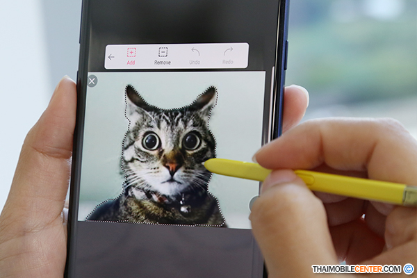 สำหรับมือถือตระกูล Galaxy Note มีความโดดเด่นในเรื่องของฟีเจอร์ที่ออกแบบมาเพื่อตอบโจทย์เหล่าศิลปิน ซึ่งเราสามารถไดคัทภาพวัตถุ ออกจากพื้นหลังได้อย่างง่ายๆ โดยไม่จำเป็นต้องนำไปเข้าโปรแกรมอื่นๆ ให้ยุ่งยาก โดยเริ่มแรกให้เราเลือกภาพที่ต้องการ เลือกฟังก์ชัน Smart Select จากหน้า Air Command และทำการลากกรอบสี่เหลี่ยม หรือวงกลมลงบนบริเวณที่ต้องการไดคัท จากนั้นให้เลือกเมนู Auto Select ที่ด้านบน ระบบจะทำการตัดขอบของภาพวัตถุคล้ายกับฟังก์ชัน Lasso Tool บน Photoshop ซึ่งหากมีส่วนไหนที่ระบบยังตัดขอบไม่เรียบร้อย เราสามารถแตะที่ฟังก์ชัน Add เพื่อเพิ่มส่วนที่ต้องการให้ตัดขอบ หรือแตะฟังก์ชัน Remove เพื่อลบส่วนที่ต้องการให้ตัดขอบ เพื่อช่วยเก็บงานได้ครับ