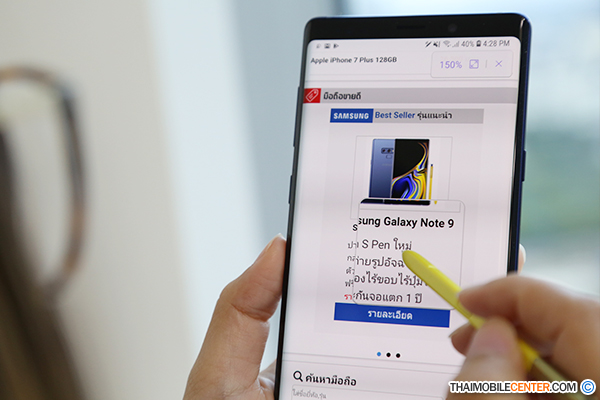 ด้วยความที่หน้าจอแสดงผลของ Galaxy Note 9 มีขนาดใหญ่ ทำให้บางครั้งตัวอักษรบางส่วนบนหน้าเว็บไซต์เล็กจนเกินไป แต่เราสามารถแก้ไขได้อย่างง่ายๆ เพียงแค่ใช้ฟังก์ชัน Magnify ที่อยู่ในเมนู Air Command โดยเมื่อผู้ใช้นำปากกา S Pen ไปจ่อเหนือหน้าจอ ระบบก็จะทำการขยายบริเวณดังกล่าวให้มีขนาดใหญ่ขึ้นเพื่อให้มองเห็นได้อย่างง่ายดาย