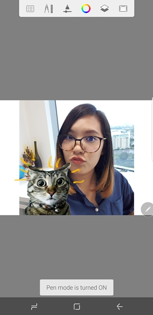 ในแอปพลิเคชัน Gallery ที่ติดตั้งมาภายในเครื่อง เราสามารถใช้ปากกา S Pen ไปจ่อบนรูปภาพที่ต้องการ เพื่อพรีวิวภาพขนาดใหญ่ หรือเล่นไฟล์ GIF โดยไม่ต้องกดเข้าไปดูได้ นอกจากนี้ หากสังเกตที่มุมด้านขวาบนของภาพที่ถูกพรีวิวด้วยปากกา S Pen จะเห็นว่ามีเมนูต่างๆ ทั้งหมด 3 อย่าง ให้กดใช้งาน ประกอบด้ว แก้ไขภาพ, แชร์ต่อให้แก่เพื่อนๆ หรือลบภาพถ่ายดังกล่าว