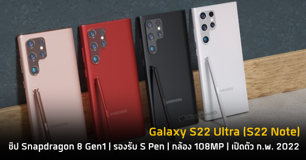 Samsung Galaxy S22 Ultra (S22 Note) เผยสเปกล่าสุด จัดเต็มชิปตัวใหม่ Snapdragon 8 Gen1, กล้องหลัง 108MP, รองรับปากกา S Pen และ Android 12 ใหม่แกะกล่อง
