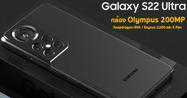 Samsung Galaxy S22 Ultra จ่ออัปเกรดด้วยกล้อง Olympus 200MP พร้อมชิป Snapdragon 895 / Exynos 2200 และปากกา S Pen