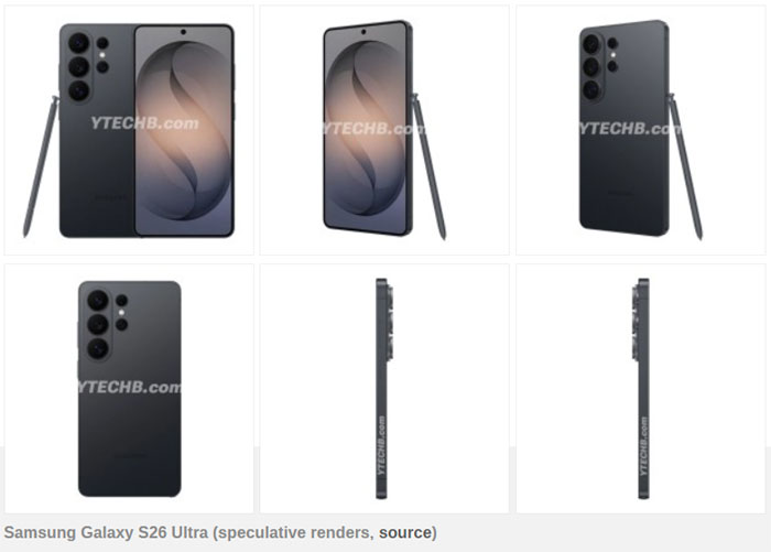 มีการคาดว่า Samsung Galaxy S26 Ultra จะเพิ่มชาร์จผ่านสายเป็น 60W และชาร์จไร้สายเป็น 25W พร้อมกล่าวถึงอะแดปเตอร์ “Samsung 60W Power Adapter” (EP-T6010NBEGWW) ที่รองรับ USB-PD และ PPS อีกทั้งยังพูดถึงพาวเวอร์แบงก์ Qi2 รุ่น EB-U2500 ที่จ่ายไร้สาย 15W รับเข้า USB-C สูงสุด 20W มีขาตั้งและแถบไฟ LED โดยถูกคาดว่าจะขายในยุโรปที่ €60