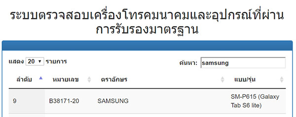 นอกจากนี้รายชื่อของ Samsung Galaxy Tab S6 Lite ยังได้ผ่านการรับรองจากทาง กสทช. ในประเทศไทยเป็นที่เรียบร้อยแล้ว ซึ่งเป็นการยืนยันว่าจะมีการเปิดตัวในเร็วๆ นี้ แต่จะเป็นช่วงเวลาใดนั้นต้องมาติดตามการประกาศจากทาง Samsung อีกครั้งค่ะ