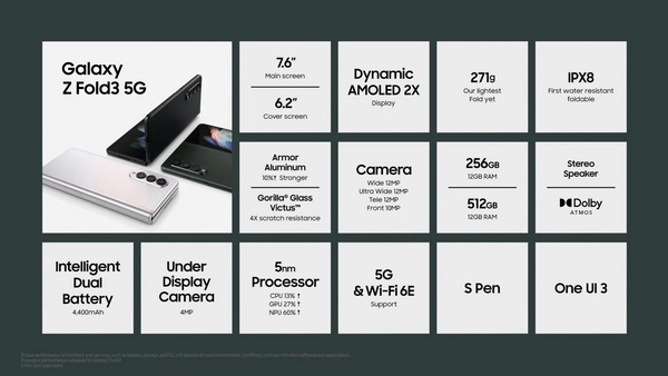 - สรุปคุณสมบัติ (สเปก) และราคา ของ Samsung Galaxy Z Fold3 5G 12GB+512GB