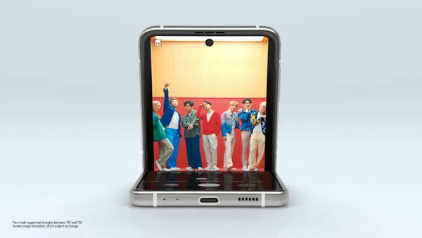 - ตามมาด้วยการแนะนำ Galaxy Z Flip3 ในแบบที่สาวๆ และเหล่าอาร์มี่ต้องชอบใจ ด้วยวิดีโอสุดพิเศษ Galaxy x BTS: Get it, let it roll ซึ่งทำให้เห็นถึงฟีเจอร์อันโดดเด่นทั้ง Cover Screen โฉมใหม่ที่ใหญ่ขึ้นกว่าเดิมถึง 4 เท่า รวมถึงฟีเจอร์กล้องสุดล้ำเอาใจสายโซเชียล อย่างการตั้งถ่ายเซลฟี่แบบแฮนด์ฟรีด้วย Flex mode หรือสแนปภาพหรือถ่ายวิดีโออย่างรวดเร็วแม้อยู่ในโหมดพับด้วยฟีเจอร์ Quick Shot มาใน 4 สีสุดโมเดิร์น ได้แก่ สีครีม, สีเขียว, สีม่วงลาเวนเดอร์ และสีดำ Phantom Black เพิ่มความชิคด้วยเคสรุ่นใหม่ที่มาพร้อมห่วงและสายคล้องนิ้ว พร้อมด้วยออนไลน์เอ็กซ์คลูซีฟ กับการเลือกแมทช์สีพิเศษ อย่าง สีเทา, สีชมพู และสีขาว ได้ด้วยตนเองผ่าน Samsung.com