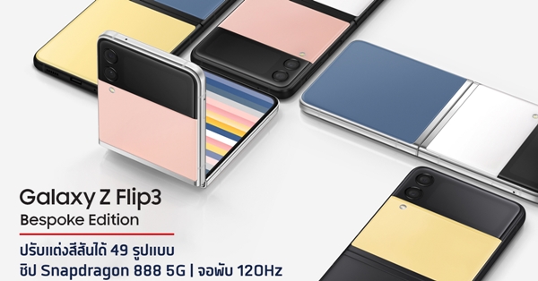 เปิดตัว Samsung Galaxy Z Flip3 Bespoke Edition มือถือฝาพับกับสีสันตัวเครื่องที่มีให้เลือกถึง 49 รูปแบบ พร้อมชิป Snapdragon 888 5G และกล้องหลังคู่ 12MP