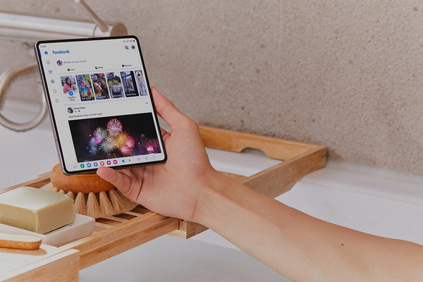 หน้าจอพับออกแบบให้สามารถทำงานแบบแยกส่วนกันได้ จึงช่วยให้ใช้งานหลายแอปได้อย่างทันใจ ทุกที่ โดยเฉพาะเมื่อใช้งาน Flex Mode [1] ซึ่ง Flex Mode จะช่วยให้แอปต่างๆ ปรับขนาดให้พอดีกับหน้าจอเมื่อกางหน้าจอออก จึงสามารถใช้งานหน้าจอครึ่งหนึ่งเพื่อชมวิดีโอ และอีกครึ่งหนึ่งเพื่อเลื่อนหาสิ่งต่างๆ ในแอปอื่นได้อีกด้วย สมาร์ทโฟน Galaxy Z Fold4 ยังมี New Taskbar [2] และรองรับการสั่งการโดยใช้นิ้วเลื่อนหน้าจอ[3] ช่วยให้หน้าจอมีรูปแบบเหมือนหน้าจอคอมพิวเตอร์ โดยสามารถเลือกใช้แอปที่ชื่นชอบหรือแอปที่เปิดไปเมื่อเร็วๆ นี้ได้ง่าย นอกจากนี้ ยังสามารถเลื่อนนิ้วเพื่อปรับขนาดแอปให้พอดีกับหน้าจอด้านหนึ่งได้ เพื่อสลับการทำงานระหว่างแบบป๊อปอัพและแบบแยกหน้าจอ ซึ่งจะทำให้การใช้งานง่ายขึ้น