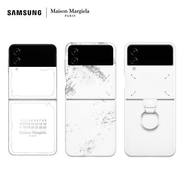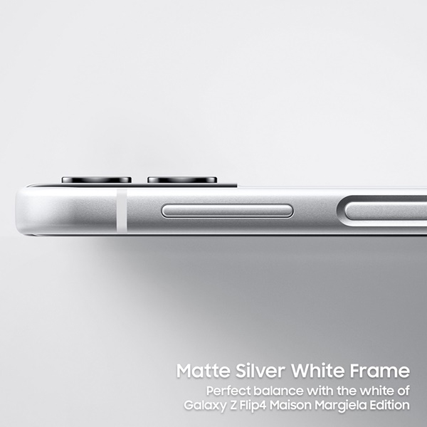 Samsung Galaxy Z Flip4 Maison Margiela Edition ออกแบบบนแนวคิดที่สะท้อนความเป็นขบถ การแข็งขืน และการท้าทายธรรมเนียมเดิม ตามแนวทางของ Maison Margiela ทุกรายละเอียดออกแบบเพื่อสะท้อนความเป็นต้นฉบับและค่านิยมของ Maison Margiela อย่างแท้จริง ด้วยตัวเครื่องสีขาวด้านล้อมด้วยเฟรมโลหะสีเงินด้าน พิมพ์ลายเส้นสะท้อนแสงตามรูปทรงของแผงวงจรภายใน และมีฉลากรหัสตัวเลขอันเป็นเอกลักษณ์ของสินค้าแบรนด์นี้ โดยมีการทำเครื่องหมายวงกลมไว้ที่เลข 11 ซึ่งหมายถึงสินค้าประเภท “เครื่องประดับ”