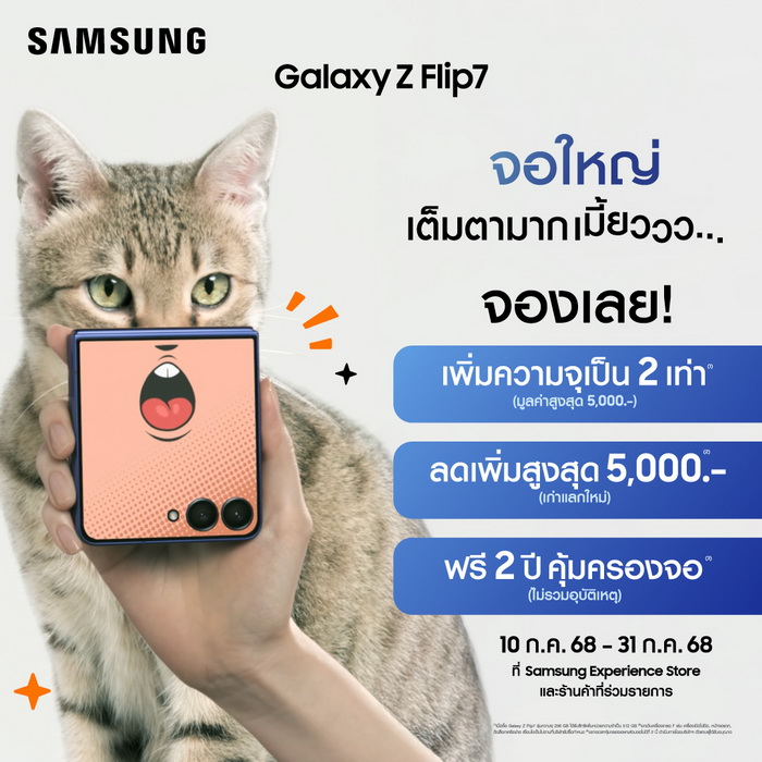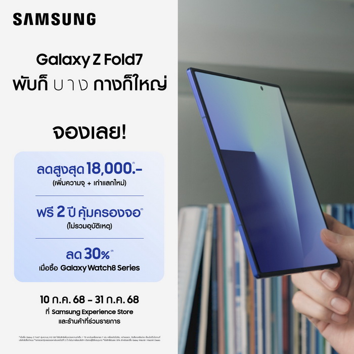 เปิดจอง Samsung Galaxy Z Fold7 / Flip7 สมาร์ทโฟนจอพับรุ่นใหม่ พร้อมโปรสุดคุ้ม! เพิ่มความจุฟรี วันนี้ - 31 ก.ค. นี้เท่านั้น