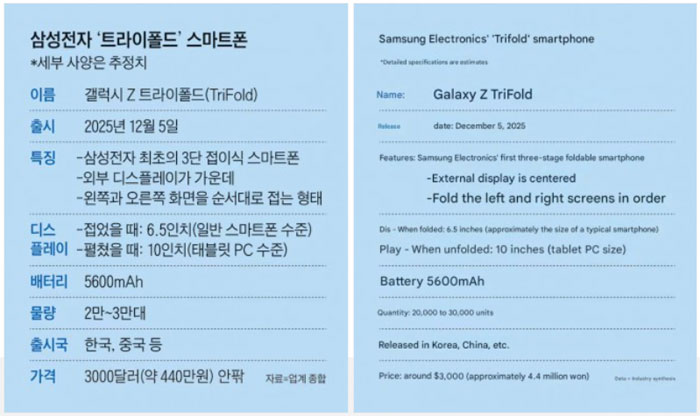 รายงานจากสื่อเกาหลี The Chosun ยังยืนยันช่วงเวลาเปิดตัวและรายละเอียดของตัวเครื่อง โดยระบุว่า Galaxy Z TriFold จะถูกผลิตจำนวนจำกัด มีราคาสูงมาก (ซึ่งไม่ใช่เรื่องน่าแปลกใจ) และจะวางจำหน่ายเฉพาะบางประเทศเท่านั้น ทำให้ผู้ใช้จำนวนหนึ่งอาจไม่มีโอกาสซื้อแม้ต้องการก็ตาม