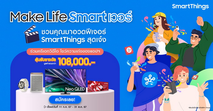 ซัมซุง ชวนประชันความเจ๋ง ครีเอทวิดีโอคอนเทนต์ SmartThings “Make Life Smart เวอร์” ชีวิตสมาร์ทขึ้นด้วยแอปฯ SmartThings ลุ้นรางวัลมูลค่ารวมกว่า 1 แสนบาท