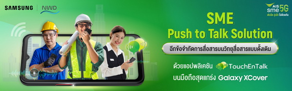 TouchEnTalk แอปพลิเคชันวิทยุเพื่อการสื่อสารบน Samsung Galaxy XCover ผ่านเครือข่าย AIS 5G/4G จาก SME Push to Talk Solution