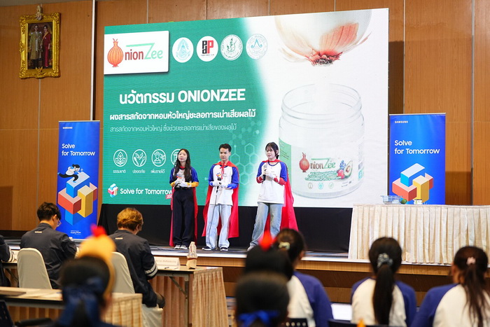 นางสาวอาภากร สุรินต๊ะ ตัวแทนจากทีม Onion Power Rangers เผยถึงที่มาและแรงบันดาลใจว่า “เราเห็นปัญหาหอมเหลือทิ้งจากญาติที่ทำอาชีพปลูกหอม เลยอยากพัฒนาของที่ถูกทิ้งให้เกิดประโยชน์ ซึ่งพอได้เข้ามาในโครงการนี้ ถึงแม้เรายังมีความรู้ด้านสารสกัดไม่มาก แต่ได้พี่ ๆ ทีมซัมซุงช่วยแนะนำตลอด ทำให้พัฒนาผลิตภัณฑ์จากรูปแบบสเปรย์มาเป็นผงที่ใช้งานง่ายขึ้น รวมทั้งได้มาเจอเพื่อนเก่ง ๆ จากทั่วประเทศ ทำให้รู้ว่าโรงเรียนเล็ก ๆ อย่างเราก็สามารถสร้างสิ่งที่เป็นประโยชน์ให้สังคมได้เหมือนกัน”