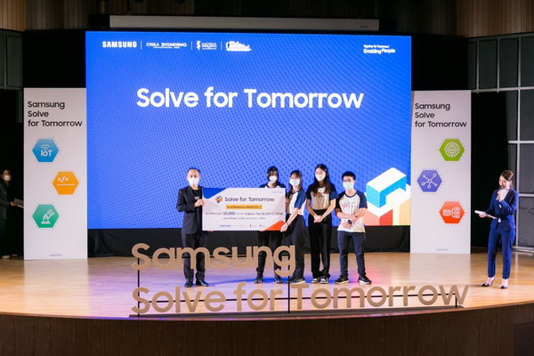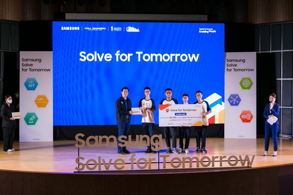 กรุงเทพฯ, 8 ธันวาคม 2565 – ซัมซุง จัดโครงการ Samsung Solve for Tomorrow เพื่อปั้นนวัตกรรุ่นใหม่ประกวดออกแบบนวัตกรรมระดับสากลที่มีเยาวชนกว่าสองล้านคนจาก 35 ประเทศทั่วโลกเข้าร่วม สำหรับประเทศไทย บริษัท ไทยซัมซุง อิเลคโทรนิคส์ จำกัด ได้จัดขึ้นในปีนี้เป็นปีแรก โดยมีคณะวิศวกรรมศาสตร์ จุฬาลงกรณ์มหาวิทยาลัยเป็นภาคีพันธมิตรหลัก ได้นำพาเยาวชนไทยกว่า 1,000 คน จาก 308 ทีมทั่วประเทศไทย เข้าร่วมประชันไอเดียสร้างสรรค์ ใช้ทักษะความรู้ด้านวิทยาศาสตร์ เทคโนโลยี วิศวกรรมศาสตร์และคณิตศาสตร์ (STEM) ในการพัฒนานวัตกรรมเพื่อแก้ไขปัญหาสังคมอย่างยั่งยืน ภายใต้หัวข้อ Innovation for Sustainable Communities, Good Health & Wellbeing โดยทีมที่คว้ารางวัลชนะเลิศในปีนี้ ได้แก่ทีม BCC Robot จากโรงเรียนกรุงเทพคริสเตียนวิทยาลัย โชว์ไอเดียสุดล้ำด้วยนวัตกรรม Fitness Force ได้รับทุนการศึกษา มูลค่า 200,000 บาท รางวัลรองชนะเลิศอันดับหนึ่ง ได้แก่ ทีม ฝัน จากโรงเรียนกำเนิดวิทย์ ด้วยนวัตกรรม DremIN ได้รับทุนการศึกษา มูลค่า 100,000 บาท และรางวัลรองชนะเลิศ อันดับสอง ได้แก่ ทีม Lunares จากโรงเรียนสาธิตการจัดการปัญญาภิวัฒน์ ด้วยนวัตกรรม Cloud based TDS meter and TDS limiting system ได้รับทุนการศึกษา มูลค่า 50,000 บาท รวมถึงสมาชิกทุกคนจะได้รับ ซัมซุง แท็บเล็ต มูลค่าเครื่องละ 23,900 บาท โดยมี ศ.ดร.สุพจน์ เตชวรสินสกุล คณบดี คณะวิศวกรรมศาสตร์ จุฬาลงกรณ์มหาวิทยาลัย เป็นประธานในพิธี, นางสาวปารมี ทองเจริญ ผู้อำนวยการฝ่ายการตลาดองค์กร บริษัท ไทยซัมซุง อิเลคโทรนิคส์ จำกัด และนายภิมุข สิมะโรจน์ เลขานุการผู้ว่าราชการกรุงเทพมหานคร ร่วมมอบรางวัล รวมถึงคณะกรรมการ คณาจารย์ และแขกผู้มีเกียรติ เข้าร่วมงานมากมาย