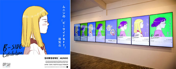 นิทรรศการ B-SIDE Solo Exhibition By Munins คือความร่วมมือครั้งล่าสุดของซัมซุง กับการร่วมสนับสนุนทั้งในด้านการสร้างสรรค์ผลงานศิลปะผ่านแท็บเล็ต Galaxy Tab S8 Ultra และการจัดแสดงผ่านหน้าจอทีวี The Frame เพื่อถ่ายทอดผลงานคอลเลคชันภาพพอร์เทรต ภายใต้คอนเซปต์ Only eyes can tell a story ที่มาพร้อมกับความตั้งใจที่จะแนะนำ NFT Arts (Non-Fungible Token Arts) ให้คนได้รู้จักมากยิ่งขึ้น โดยงานดังกล่าวจะจัดทั้งในแบบออฟไลน์และออนไลน์ เพื่อให้ทุกคนได้เต็มอิ่มกับงานศิลปะครั้งนี้กันได้อย่างเต็มที่