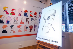 นอกจากนี้ เมื่อวันงานเปิดตัวเมื่อ 26 กุมภาพันธ์ที่ผ่านมา มุนินฺ ยังได้จัดกิจกรรมแจกลายเซ็นพร้อมภาพวาดให้เหล่าแฟนแบบเรียลไทม์ ผ่านการตวัดปากกา S Pen เวอร์ชันใหม่ของ Galaxy Tab S8 Ultra ลงบนหน้าจอ Super AMOLED ขนาด 14.6 นิ้ว ที่มีขอบหน้าจอบางเพียง 6.3 มิลลิเมตร โดยแท็บเล็ตรุ่นนี้ยังสามารถใช้งานแอปพลิเคชัน Clip Studio Paint เพื่อเปลี่ยนสมาร์ทโฟนซัมซุงให้กลายเป็นจานสีดิจิทัล S Pen ให้เป็นพู่กัน และหน้าจอขนาดใหญ่ของ Galaxy Tab S8 เป็นผืนผ้าใบ โดยผู้ใช้สามารถเลือกเครื่องมือและรูปแบบหัวแปรงได้ตามต้องการ รวมถึงยังสามารถเลือกสีมาใช้โดยดึงมาจากภาพจริงที่เซฟไว้ในสมาร์ทโฟนได้อีกด้วย ซึ่งผลงานวาดภาพด้วย Galaxy Tab S8 Ultra นี้ นอกจากจะได้รับการส่งให้ผู้เข้าชมที่ใช้งานซัมซุง กาแลคซี่ทันทีผ่าน Quick Share แล้ว ยังจะถูกนำไปจัดแสดงใน Virtual Gallery ร่วมกับอีกหนึ่งภาพวาดพิเศษที่รอให้ทุกคนไปค้นพบในโลกเสมือนด้วยเช่นกัน