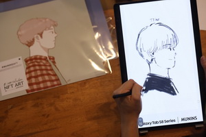 ซัมซุงชวนทุกคนสัมผัสมุมมองใหม่ของการรับชมงานศิลปะแบบ NFT ผ่านการร่วมมือกับนักวาดการ์ตูนชื่อดัง มุนินฺ หรือ มุนินทร์ สายประสาท ในงานนิทรรศการ B-SIDE Solo Exhibition By Munins ที่เชื่อมโลกจริงกับโลกเสมือนเข้าด้วยกัน โดยภายในงานทุกท่านจะได้สัมผัสภาพวาดใบหน้าด้านข้างกว่า 100 ภาพผ่านลายเส้นอันเป็นเอกลักษณ์ของศิลปินที่มาพร้อมสีสันและรายละเอียดอันคมชัดบนไลฟ์สไตล์ทีวีดีไซน์กรอบรูป อย่าง The Frame พร้อมอีกหนึ่งภาพวาดพิเศษที่สร้างสรรค์จากปลายปากกา S Pen ของแท็บเล็ตรุ่นล่าสุด Galaxy Tab S8 Ultra ที่จะเปิดให้ชมเฉพาะทาง Virtual Gallery เท่านั้น