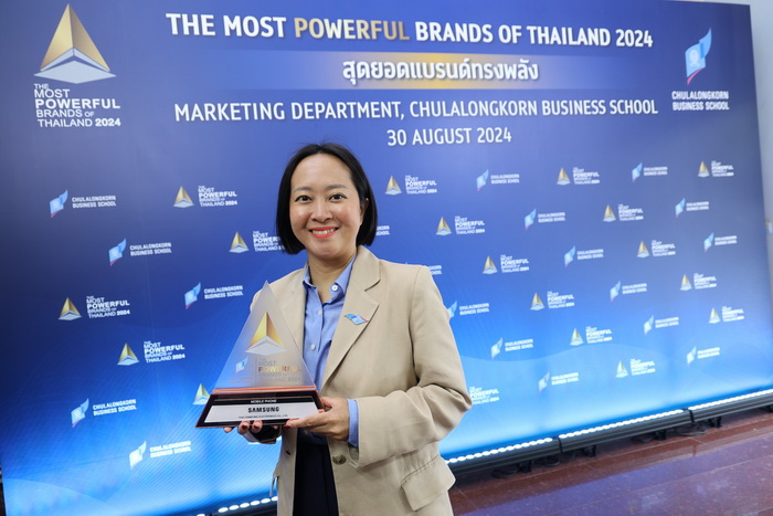 ซัมซุง ผู้นำด้านเทคโนโลยีและนวัตกรรม ตอกย้ำความมุ่งมั่นสร้างสรรค์นวัตกรรมที่ดีที่สุดเพื่อคนไทย ประกาศความสำเร็จและความไว้วางใจจากผู้บริโภคชาวไทยที่มีต่อแบรนด์ซัมซุง คว้ารางวัลสุดยอดแบรนด์ทรงพลัง The Most Powerful Brands of Thailand 2024 ในกลุ่มผลิตภัณฑ์สมาร์ทโฟน ต่อเนื่องเป็นปีที่ 7 ซึ่งเป็นรางวัลที่จัดขึ้นโดยภาควิชาการตลาด คณะพาณิชยศาสตร์และการบัญชี จุฬาลงกรณ์มหาวิทยาลัย