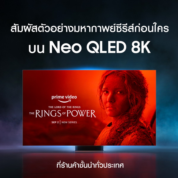 ซัมซุง อิเลคโทรนิคส์ ผู้ผลิตทีวีชั้นนำของโลก 16 ปีติดต่อกัน ประกาศความร่วมมือกับ Prime Video เปิดโอกาสให้แฟนๆ ได้สัมผัสบรรยากาศการชมซีรีส์ยอดฮิตแบบตื่นตาตื่นใจสมการรอคอยการกลับมาของ‘The Lord of the Rings: The Rings of Power’ พร้อมกับเทคโนโลยีภาพสุดพิเศษ เฉพาะบนหน้าจอล้ำสมัยของซัมซุงทีวี Neo QLED 8K และ 4K ก่อนใครที่ร้านค้าชั้นนำทั่วประเทศ