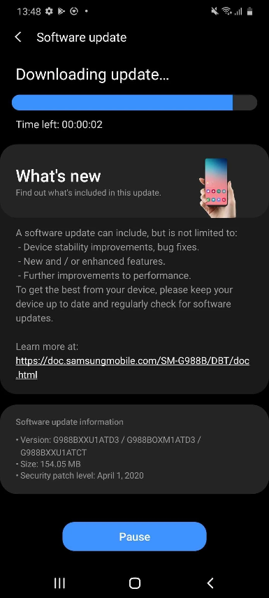 ใครที่ใช้ Samsung Galaxy S20, S20+ หรือ S20 Ultra อยู่ จะได้รับแจ้งเตือนโดยอัตโนมัติเมื่อมีอัปเดตเข้ามา หรือสามารถเช็คด้วยตัวเองได้โดยไปที่ Settings (การตั้งค่า) > Software update (อัพเดตซอฟต์แวร์) ครับ