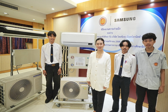 บริษัท ไทยซัมซุง อิเลคโทรนิคส์ จำกัด ร่วมกับ สำนักงานคณะกรรมการการอาชีวศึกษา (สอศ.) ลงนามบันทึกข้อตกลงความร่วมมือ (MOU) เพื่อพัฒนาหลักสูตรการเรียนการสอนและยกระดับทักษะบุคลากรอาชีวศึกษาไทยในสาขาระบบทำความเย็นและปรับอากาศ มุ่งสร้างกำลังคนคุณภาพที่มีทักษะตรงกับความต้องการของอุตสาหกรรมยุคใหม่ พร้อมส่งเสริมความเข้มแข็งของระบบอาชีวศึกษาไทยให้สามารถขับเคลื่อนเศรษฐกิจของประเทศอย่างยั่งยืน