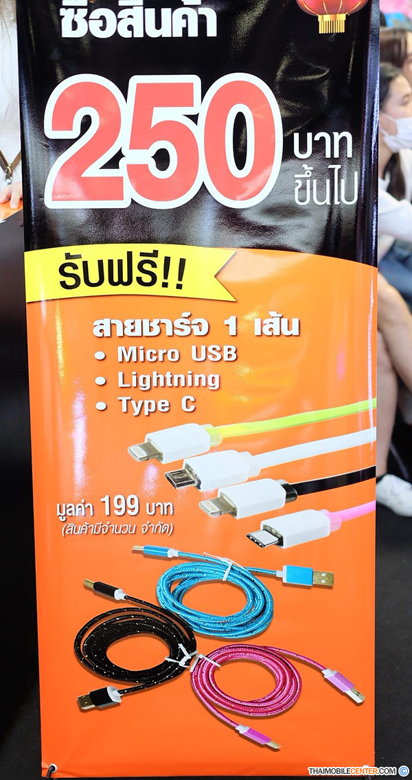 พิเศษเมื่อซื้อสินค้าครบ 250 บาทขึ้นไป รับฟรีสายชาร์จ 1 เส้น มูลค่า 199 บาท (microUSB, Lightning หรือ USB Type-C)