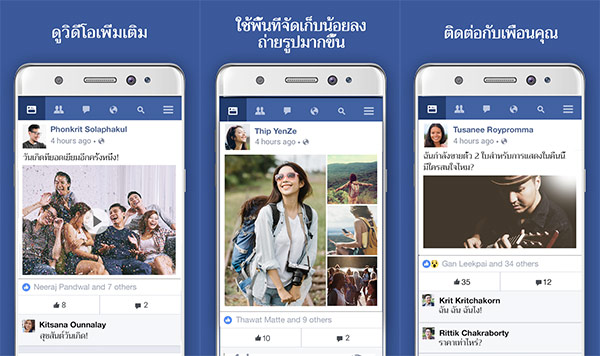 ปัจจุบันผู้คนเกือบทุกเพศ ทุกวัย ต่างก็มีพื้นที่ส่วนตัวเป็นของตัวเองบนเว็บโซเชียลมีเดียยอดนิยมอย่าง Facebook ที่นอกจากจะอัปเดตเรื่องราวของตนเองแล้ว หลายคนยังเลือกใช้ Facebook เพื่อรับข้อมูลข่าวสารที่ทันเหตุการณ์ด้วยเช่นกัน สำหรับตัว Facebook Lite จะมีขนาดแอปที่เล็กลง และกินพื้นที่น้อยกว่า โดยที่ยังคงฟีเจอร์หลักไว้อย่างครบครัน ไม่ว่าจะเป็น Timeline, การ Follow, กดไลค์ และคอมเมนท์, โพสต์สเตตัสพร้อม emoji, อัปโหลดรูปภาพ หรือเพิ่มภาพในอัลบัมต่างๆ, การค้นหารายชื่อเพื่อน และการแก้ไขโปรไฟล์ของตน รวมถึงกรุ๊ปต่างๆ นอกจากนี้ยังแชทหากันได้โดยไม่จำเป็นต้องลงแอปพลิเคชัน Messenger เพิ่มอีกด้วย